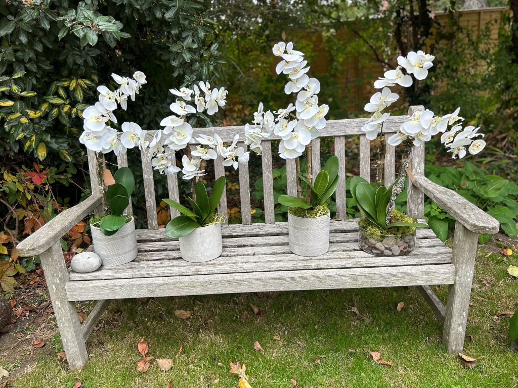 I have three creations designed by Rosemary in my home, one orchid and two in vases, and they never fail to prompt admiring comments. They always look fresh and inviting and, not only have I saved several hundred £s already, it’s very pleasing to come home to a beautiful, fresh looking floral display. They look so realistic and the orchid has twice been watered by mistake when I have been away!